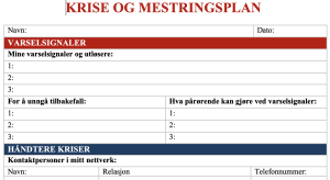 For oss som jobber i helsevesenet, er kriseplanen først og fremst et praktisk verktøy vi lager i «fredstid» sammen med pasienten og pårørende. Vi vet alle at når det først koker, er det vanskelig å opprette den gode alliansen og lage en solid plan. Da trenger vi en avtale som er inngått mens pasienten var i stand til å reflektere og se muligheter.